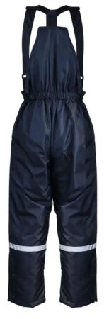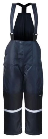 Jardinera térmica hasta -15ºC, repelente al agua, cinta reflectante en las piernas, ajuste en tobillos. Tela de refuerzo en rodillas. Tirantes elástico y ajustables