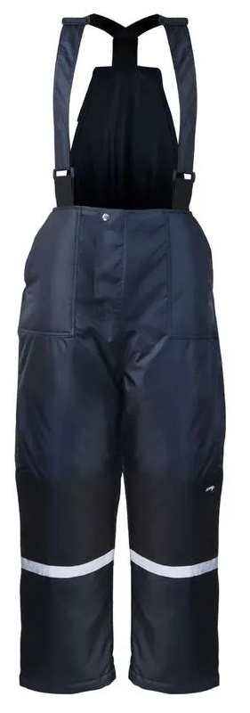 Jardinera térmica hasta -15ºC, repelente al agua, cinta reflectante en las piernas, ajuste en tobillos. Tela de refuerzo en rodillas. Tirantes elástico y ajustables