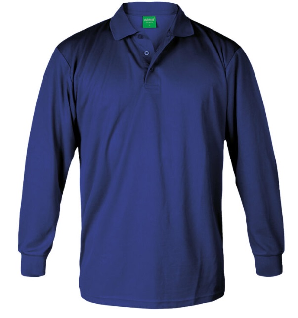 100% poliéster 160gr por mt2, Tecnología que evapora el sudor rápidamente, No necesita planchado, Mantiene los colores Brillantes, Tela indeformable, no encoge con el lavado, Cuello camisero con tres botones, Manga larga con puños elasticados.