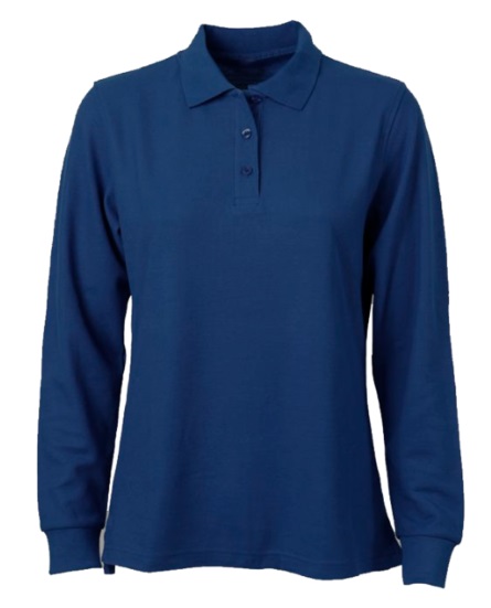 Polera Piqué 60% algodón/40% poliéster, 220 grs. por mt.2 Cuello camisero 3 botones, manga larga con puño elasticado, tela fresca y liviana que absorbe el sudor, con antipeeling (evita la formación de motas). Costuras reforzadas en hombros y escote de espalda.